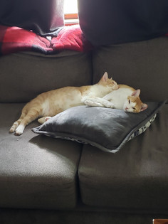 Another happy story: We saw that Whiz had been overlooked since November. Our assumption was that it was because he wasn't very peopley. He had no interest in human interaction, he just wanted to play with the other cats. So we took a chance on him and he is so happy! He made friends with our other rescue, June. His name is now Goose, and he lets us pet him now! So glad we gave him a chance!" -Emily B.