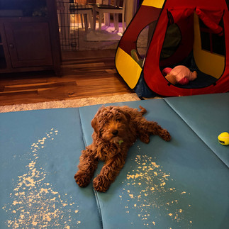 "Miles is one of the puppies that came to the shelter around Jan 16th,2025. We have had him for 2 weeks now. As soon and I saw the ad for him I knew he would be a good fit for us. I raced to the shelter with the kids so we could all meet him. I have always preferred to rescue but the opportunity hasn’t come up really until now. We have to maintain a hypoallergenic environment so bringing new animals in can be tricky. Miles fit into the family immediately after we got him home. He is the absolute sweetest baby. The adoption process went a lot smoother than I thought it would. I have to give the staff a lot of credit because when we were there it was extremely busy. They managed to keep everything in order and get us out the door with everything we needed to be successful parents to Miles. Miles has a big brother at home named Floyd and both boys do everything together. Miles even went with Floyd to the groomer’s this week to get cleaned up. I’ve attached pictures to show where Miles started and where he is now!" - Sara F.