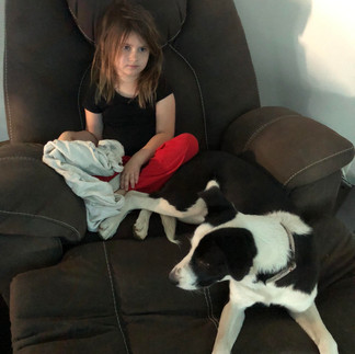 "As soon as we met Molly we knew she was the one for our active family! This is a true example of giving those shelter animals a chance! She instantly attached herself to her 4 year old human sister. It did take a few days for her fur sister to except the energy that Molly brought, but after losing our girl, Sadie, we knew we had to fill the void with love from another rescue dog! Molly is enjoying life! She loves to run around the farm and check out all the smells! She is amazing with the cats! It had only took one week of leash time for her to be able to roam the farm. When she is not roaming the farm with her fur sister she is hanging out in the house on her comfy bed with all her toys! Her favorite toy is her purple hippo. Molly says goodnight to her human sister every night with cuddles and kisses. Molly is still working on her commands but will get there in no time! We have mastered what "go for a ride" means, and "time to eat" which is her favorite! We have "sit down" about 90% of the time, we are potty trained! Molly is a master at taking treats nicely! We ended up doing a DNA test on her and honestly it doesn’t matter what she is. She has a kind soul and is the breed of a good dog!! She has so much love to give! We truly couldn’t be happier with her! She is just a wonderful companion and we will definitely continue to rescue! So, thank you Dubuque regional humane society for letting us adopt Molly!" - Jennifer B.