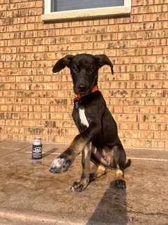 We did a DNA test and found out he is 52% Great Dane, 18% German Shepard, 15% Pitbull, 13% Staffy, and 2% Chow Chow! No matter what breeds he’s made up of, he’s just perfect and we couldn’t love him more! He is our very first dog together and is so special to us🩷. Thank you, DRHS, for all you do for these animals!" - Jenna H.